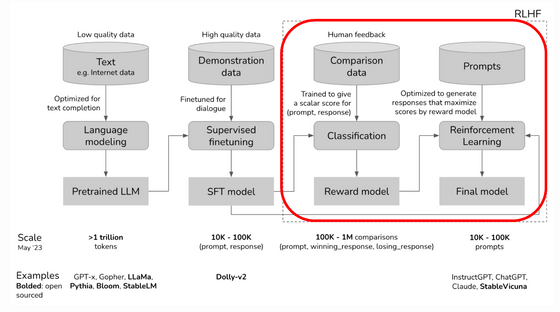 대규모 언어 모델의 학습에서는, 실제 인간에 의한 평가를 모델의 출력에 반영시키는 「Reinforcement Learning from Human Feedback(RLHF)」가 행해집니다. 그러나 RLHF는 인건비로 인한 비용이 많이 들거나 피드백을 회수하는 데 시간이 걸리는 등의 단점이 존재했습니다.