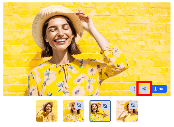드래그 앤 드롭 후 수십 초 만에, 유사 이미지가 3장 생성되었습니다. 화면 하단의 썸네일을 클릭하면 각 이미지를 볼 수 있습니다.