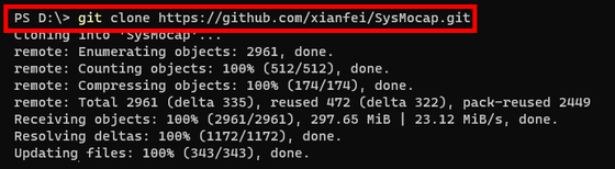 cd SysMocap을 입력하여 SysMocap의 로컬 리포지토리로 이동합니다.