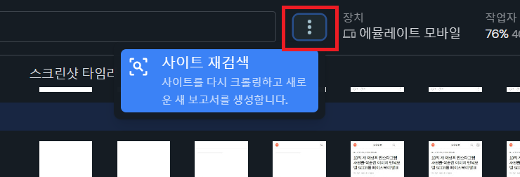 또한 오른쪽 상단의 3점 마크에서 "Rescan Site"를 클릭하여 사이트 전체를 다시 스캔할 수 있게 되었습니다.