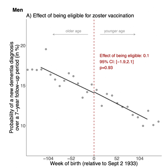 Causal evidence that herpes zoster vaccination prevents a proportion of dementia cases | medRxiv