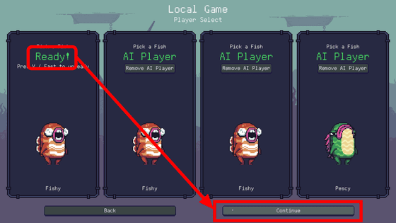 플레이어 수를 2명~4명으로 설정하고 다시 스페이스바 키를 누릅니다. Ready가 표시되면 Continue를 클릭합니다.