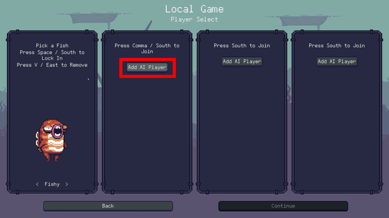 스페이스바를 눌러 매칭에 참여합니다. 쉼표 키를 누르면 화면 공유에 의한 2P 플레이어를 추가할 수 있습니다만, 이번에는 AI와 플레이하기를 선택합니다.