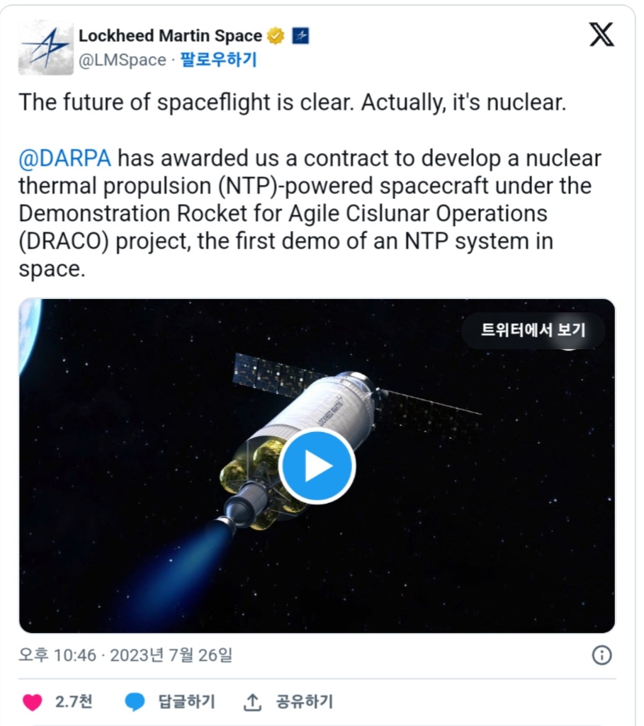 드디어, 애니메이션이나 영화에서나 보던 원자력 로켓이 현실에 등장하는 건가요?