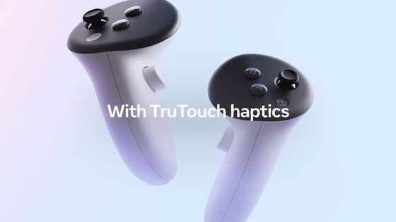 컨트롤러는 Quest 2와 크게 다르며 핸드 트래킹을 위한 둥근 링 부분이 없어졌습니다. 외형은 Quest Pro에서 사용되고 있는 Meta Quest Touch Pro 컨트롤러에 가깝고, 리얼한 진동을 체험할 수 있는 TruTouch 햅틱스도 탑재하고 있습니다만, 컨트롤러에 인식용 카메라는 탑재되어 있지 않은 모양. 그러나 Meta Quest Touch Pro 컨트롤러를 별도로 구입하여 사용할 수 있습니다.