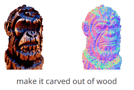 생성된 3D 모델을 '목각으로 만들어라'라고 프롬프트를 편집하면 다음과 같이 목각풍이 됩니다.