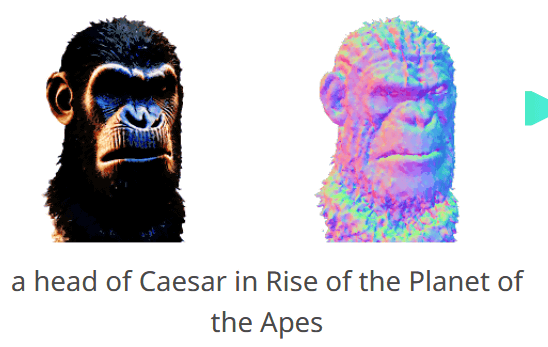 우선, 「'혹성탈출: 진화의 시작'에 등장하는 시저의 머리」라는 프롬프트로 생성한 3D모델이 이하.