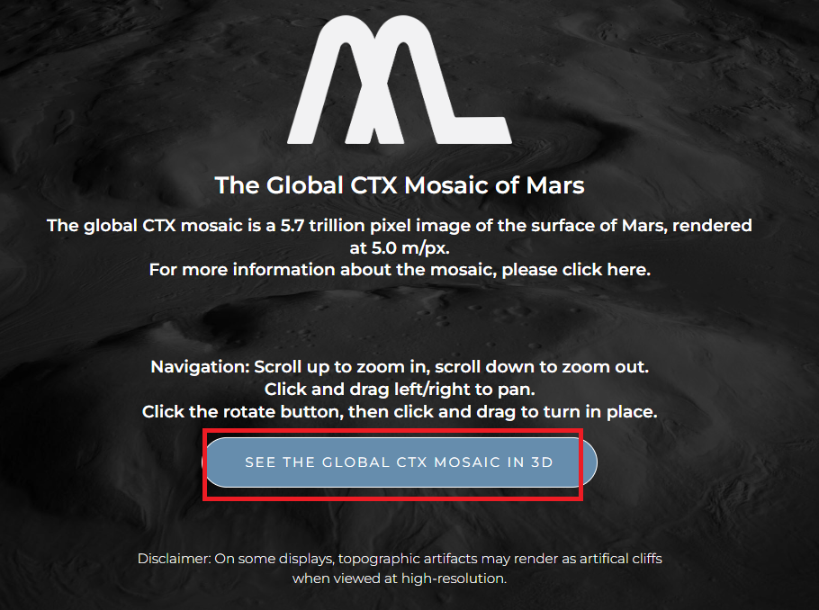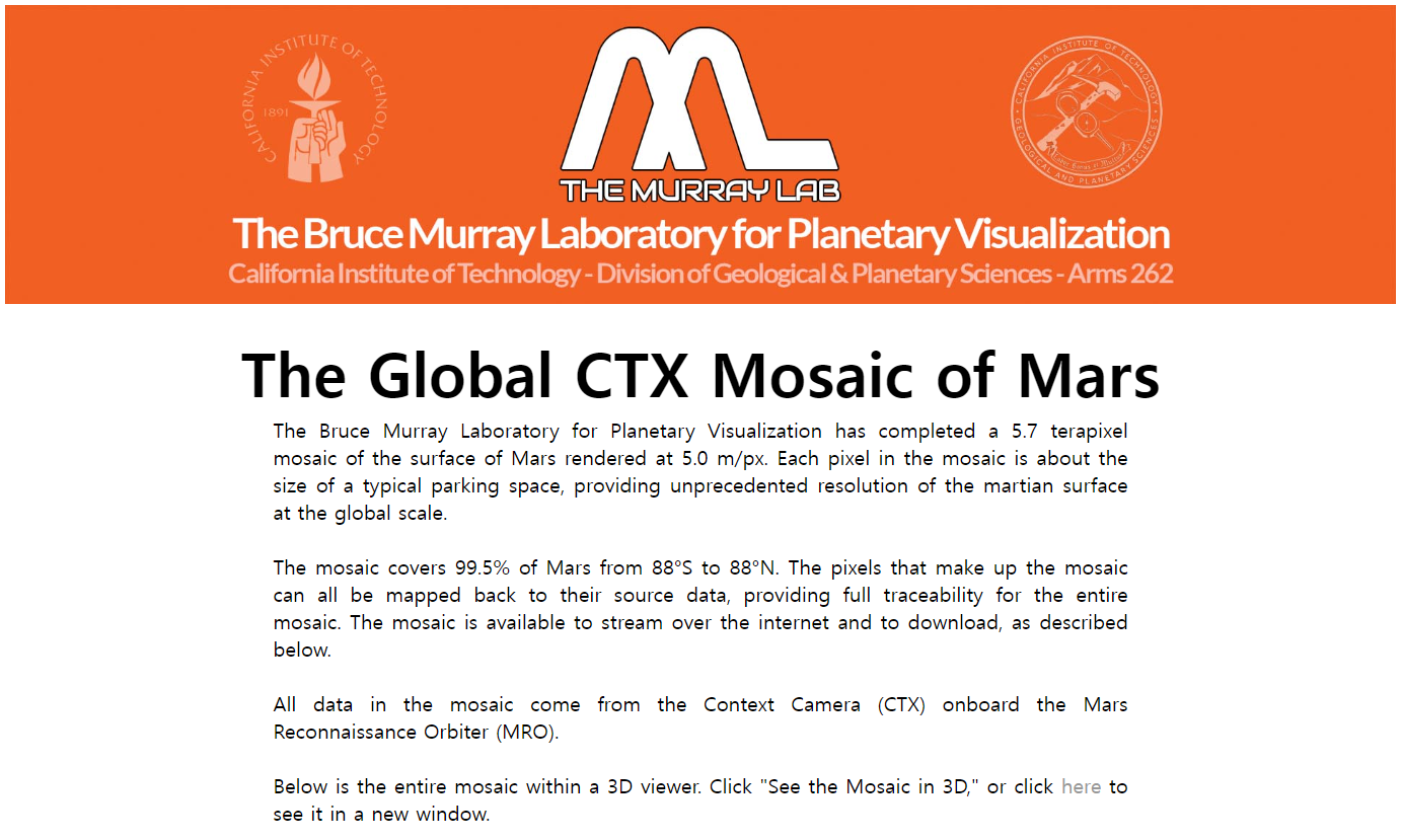 위 사이트를 방문하여 "SEE THE GLOBAL CTX MOSAIC OF MARS"를 클릭합니다.