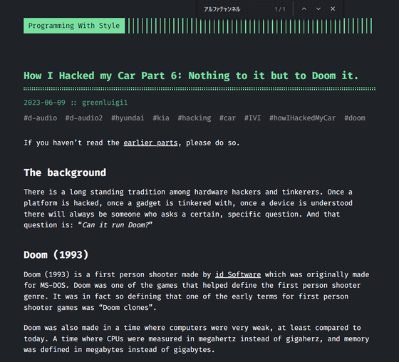 덧붙여, greenluigi1 씨는 현대 자동차의 차량 인포테인먼트 시스템에 DOOM을 구현하는 프로젝트를 「DAudio2Doom」라고 명명해, GitHub상에서 이용한 소스 코드 등을 정리해서 공개하고 있습니다.