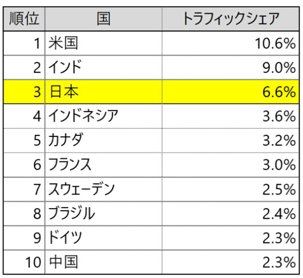 OpenAI가 2022년 11월에 공개한 ChatGPT는 공개로부터 불과 2개월 만에 전 세계의 사용자수가 1억 명에 도달했지만, 특히 일본으로부터의 액세스수는 2023년 4월 중순에 하루 746만 명에 도달, 트래픽 점유율은 미국, 인도에 이어서 세 번째입니다. 이로부터 일본의 ChatGPT 이용 정도는 세계적으로 봐도 높습니다.