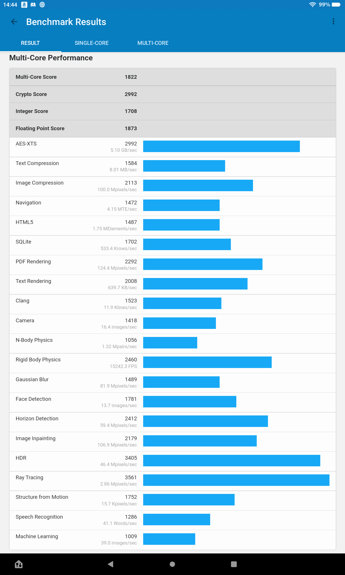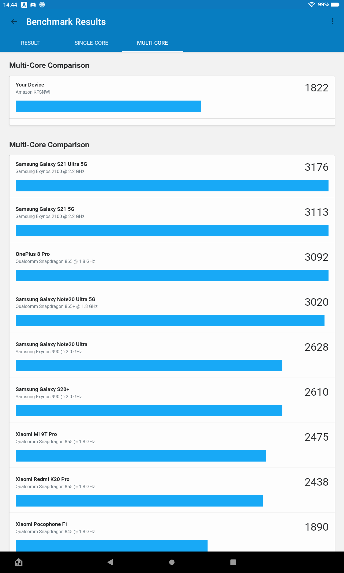 멀티 코어의 성적은 1822. 역대 스코어로 보면 Xiaomi Pocophone F1보다 훨씬 밑도는 정도.