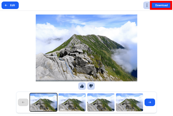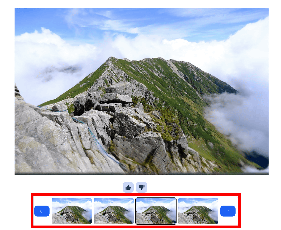 잠시 기다리면 외부를 덧 그린 이미지가 4장 생성됩니다. 화면 하단의 화살표 버튼을 클릭하거나 썸네일을 클릭하면 각 이미지를 확인할 수 있습니다.
