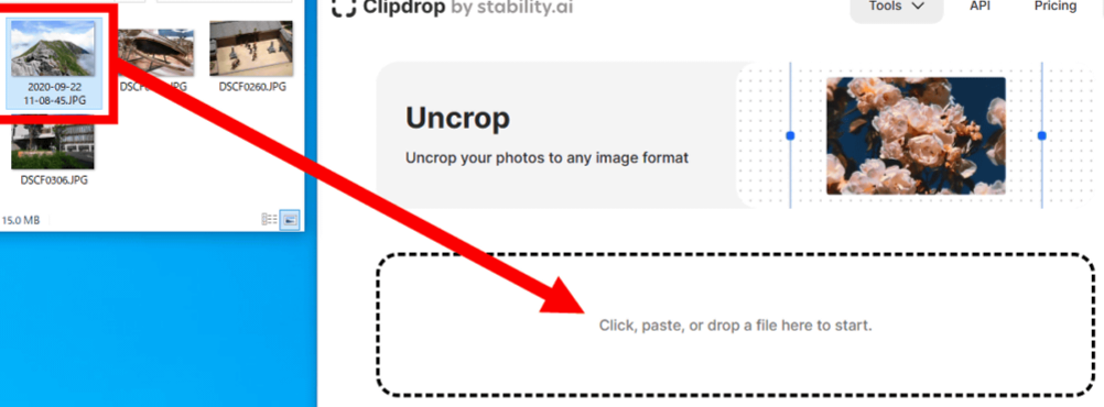 Uncrop을 사용하여 이미지의 테두리를 그리려면 먼저 편집하려는 이미지를 Uncrop 화면에 드래그 앤 드롭합니다.