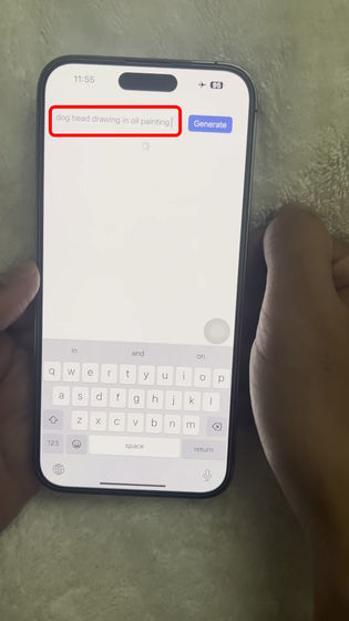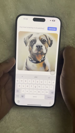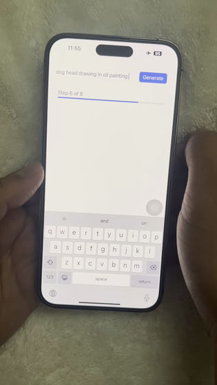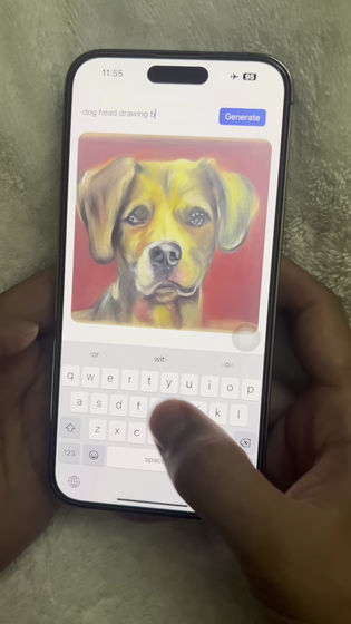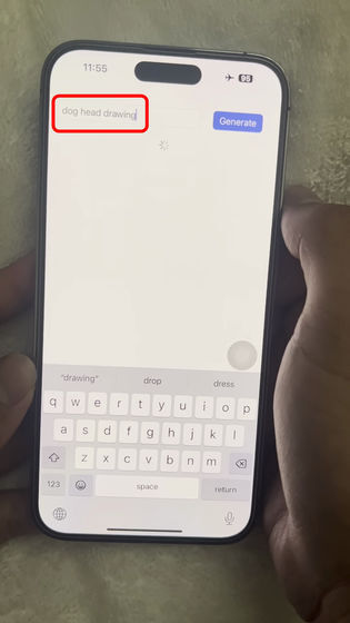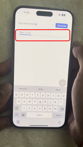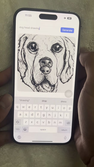 iPhone에서 SnapFusion을 실행하는 모습입니다. dog head drawing 을 입력하여 생성합니다.