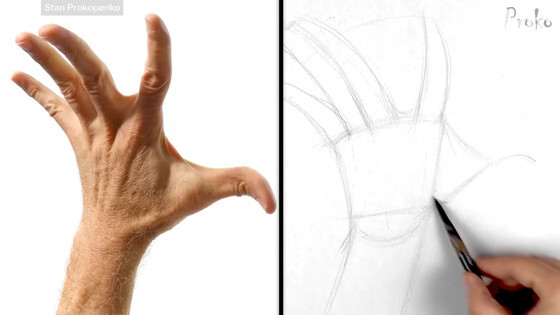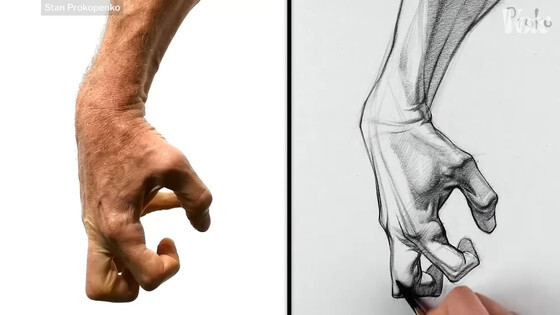 아티스트이면서 미술 교사도 맡고 있는 스탠 프로코펜코 씨는 아티스트가 되기 위한 훈련으로서 「패턴 인식」이 중요하다고 지적하고 있습니다. 많은 손 모양과 움직임을 관찰하는 것뿐만 아니라, 우리는 자신과 누군가의 손을 인식하며 살아왔기에, 손이 무엇인지 이해할 수 있습니다.
