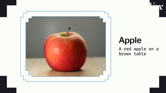 그러나 AI가 보는 것은 사과의 사진과 "갈색 테이블 위에 있는 사과"라는 설명뿐입니다.