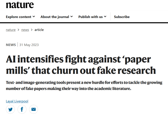 ChatGPT와 같이 인간과 동등한 수준에서 자연스러운 문장을 생성할 수 있는 AI와 텍스트를 입력하는 것만으로 고정밀 사진과 일러스트를 생성할 수 있는 AI가 등장한 것으로, 실적을 늘리기 위해 가짜 과학 논문을 AI에 집필시키는 경우가 보고되었습니다.