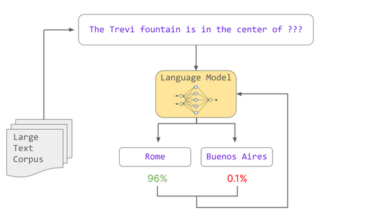 이러한 확률은 교육 도중 학습한 통계 패턴을 기반으로 합니다. 모델 트레이닝은 문장에서 '누락된 단어는 무엇인가'라는 확률 계산을 통해 언어 모델이 문법과 단어 관계 등 다양한 언어의 패턴을 학습하도록 합니다. 이렇게 학습한 모델을 「사전 학습이 끝난 모델」이라고 부릅니다.