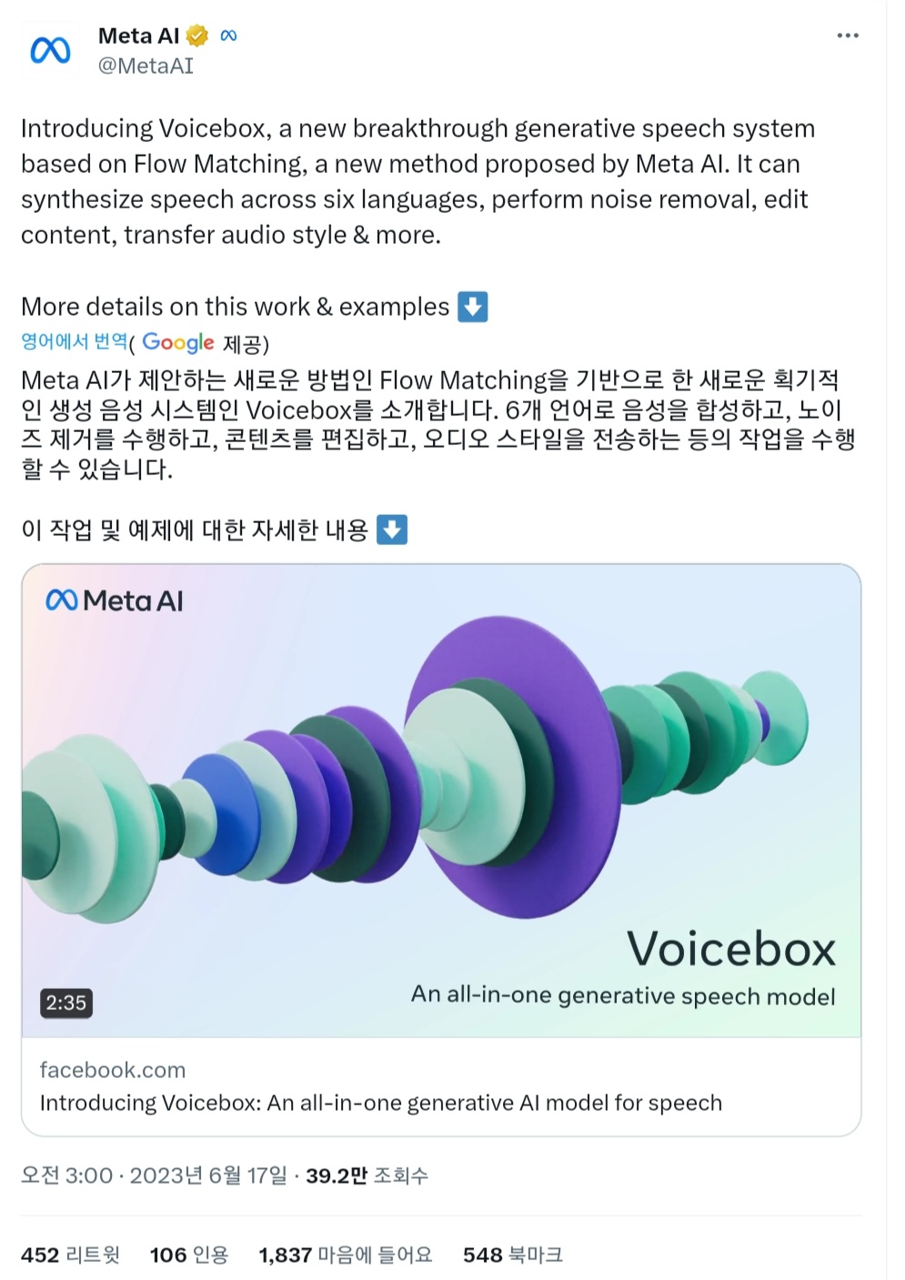 Voicebox의 높은 성능은 다음 트윗에 포함된 영상을 보시면 쉽게 알 수 있습니다.