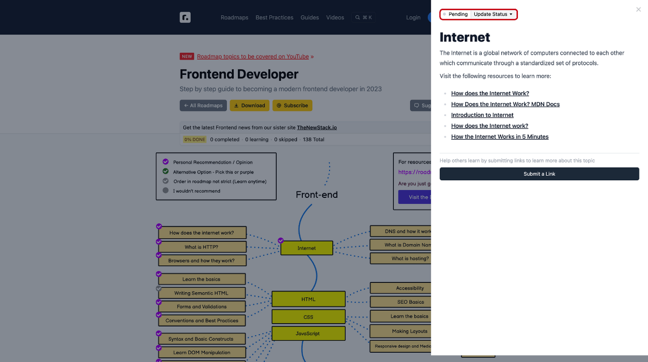 Community driven roadmaps, articles and guides for developers to grow in their career.
