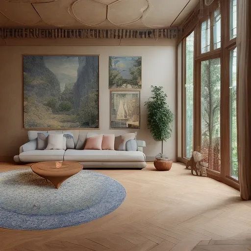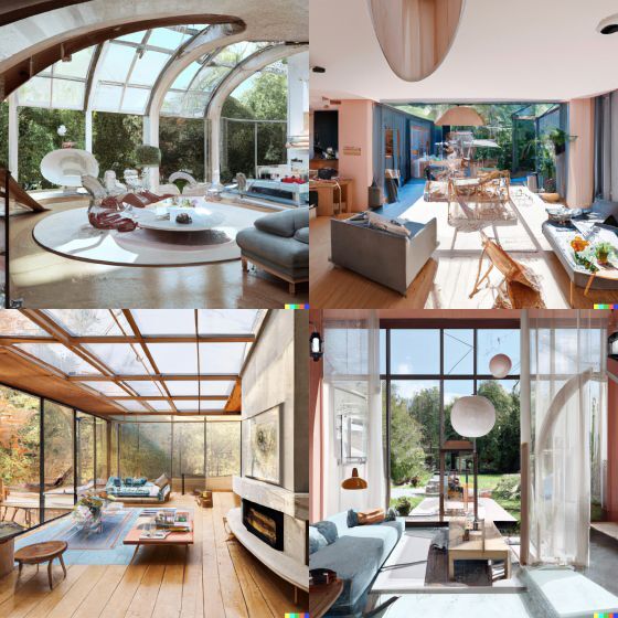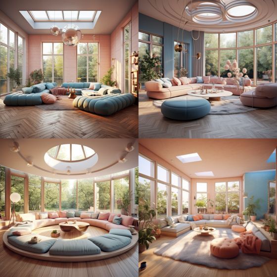 Midjourney의 이미지는 전체적으로 둥근 가구가 많습니다.
