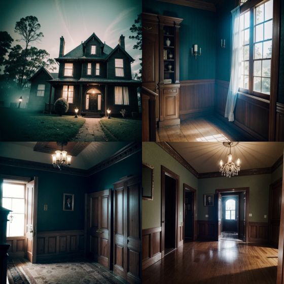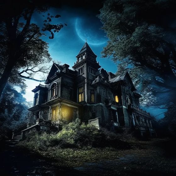 a haunted house with ghostly apparitions, eerie shadows, and mysterious secrets lurking in every corner