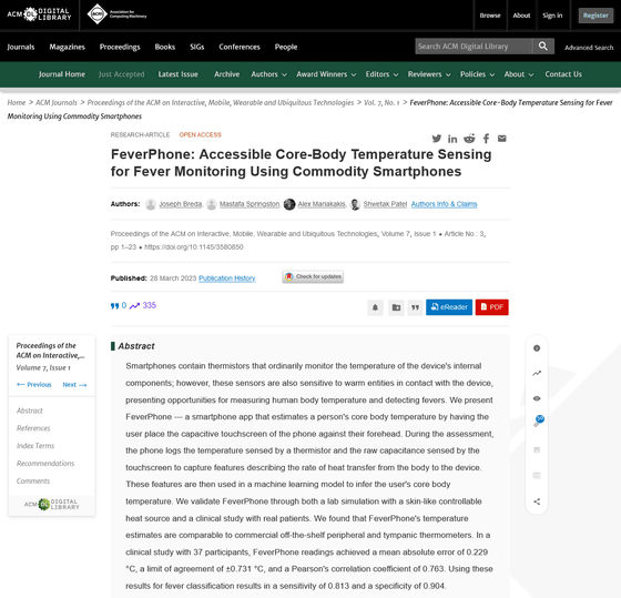 FeverPhone: Accessible Core-Body Temperature Sensing for Fever Monitoring Using Commodity Smartphones: Proceedings of the ACM on Interactive, Mobile, Wearable and Ubiquitous Technologies: Vol 7, No 1