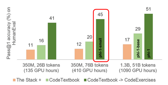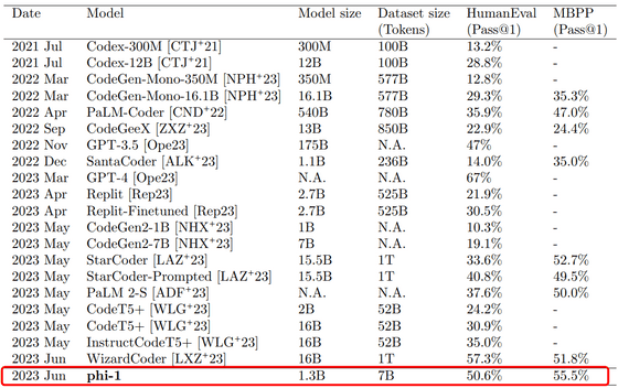 Microsoft Research의 AI 연구팀이 Transformer 기반 모델 phi-1을 발표했습니다. 이 모델은 파라미터 수가 GPT-3.5의 100분의 1 이하인 13억 밖에 안되는데도 테스트용 데이터 세트 HumanEval에서 GPT-3.5를 웃도는 성적을 거둔 것으로 보고되었습니다.