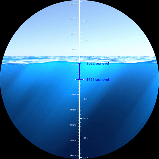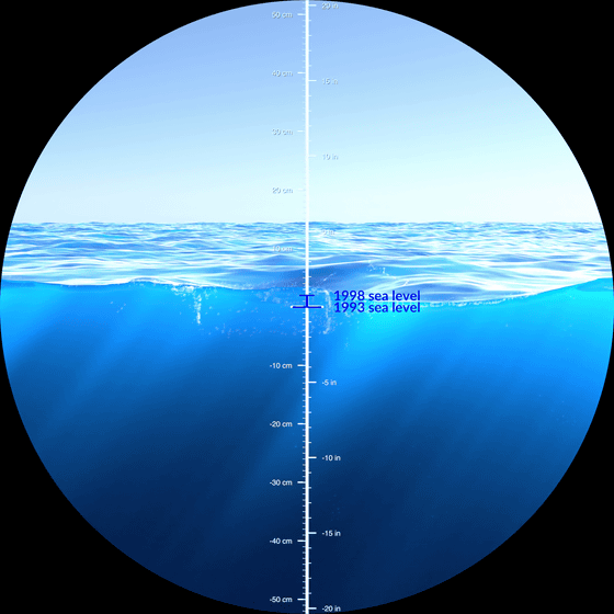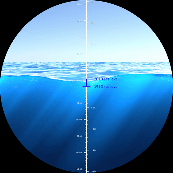 지구 온난화에 의해 극지의 얼음이 녹아 세계의 평균 해수면은 상승을 계속하고 있습니다. 이것이 얼마나 심각한 상황에 있는지, NASA가 20년간의 측정치를 바탕으로 시각화한 애니메이션을 공개하고 있습니다.