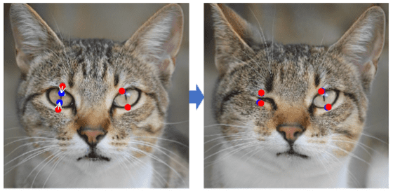 프로젝트 페이지에서는 무엇을 할 수 있는지 소개하는 영상이 다수 게재되어 있습니다. 예를 들어 아래 그림과 같이 강아지의 코 위에 빨간 점을 올리고 움직이고 싶은 장소에 파란색 점을 설정합니다.