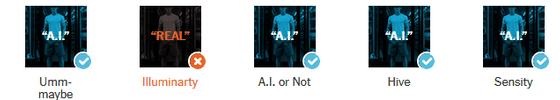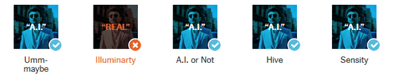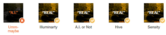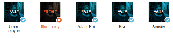 테스트 결과, Illuminarty를 제외한 4개의 검출 툴이 「AI가 생성한 이미지다」라고 간파했습니다.