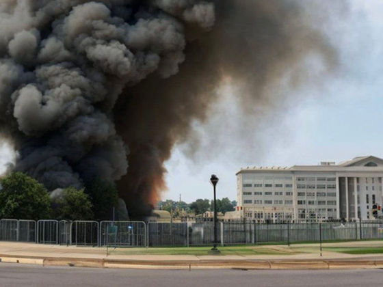 다음은 AI가 생성한 펜타곤 근처 화재 이미지 입니다.