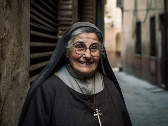 아래의 미소를 짓는 수녀의 이미지는 AI에 의해 생성된 이미지입니다.
