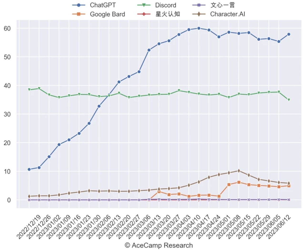 덧붙여 중국 AceCamp Research의 조사에서도, ChatGPT를 포함한 대화형 AI의 액세스 수의 성장은 둔화되고 있습니다.