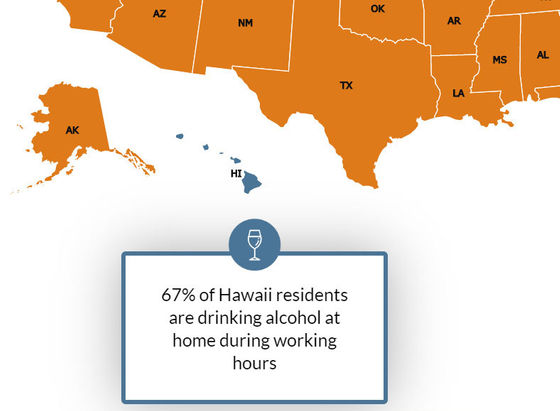 한편 1위는 하와이로, 재택근무 중 음주하는 사람의 비율은 무려 67%였습니다.