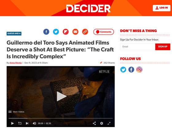 피노키오를 공개할 때, 델 토르는 온라인 콘텐츠와 팝 문화와 관련된 뉴스와 작품 소개를 게재하는 DECIDER와 인터뷰했습니다.