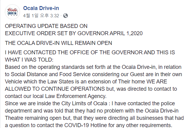 세계의 다양한 정보를 발신하는 Atlas Obscura에 따르면, 플로리다 오 칼라에 있는 자동차 극장을 경영하는 존 왓케씨도 "이 업계에서 최근 몇 년 볼 수 없었던 상승 기류가 될지도 모른다"라고 느끼고 있다는 것입니다.