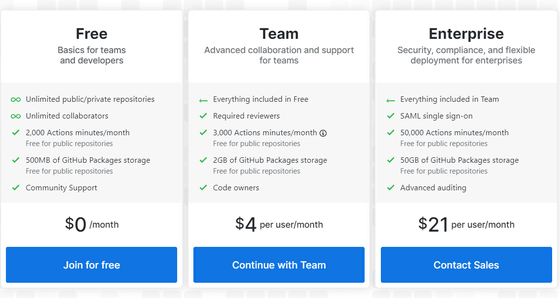 지금까지 조직에서 GitHub를 개인 개발에 사용하는 경우는 유료 플랜 중 하나에 가입해야 했습니다. 그러나 지구 상의 모든 개발자가 GitHub에 액세스 가능하도록 할 필요가 있다고, GitHub 가격에 의한 제한을 철폐하고 누구나 무료로 개인 저장소에 다른 사용자를 무제한으로 초대하여 공동 개발이 가능하도록 했습니다. 이에 따라 무료 플랜의 계정에서 다른 사용자가 만든 개인 저장소에 참여할 수 있게 되었습니다.