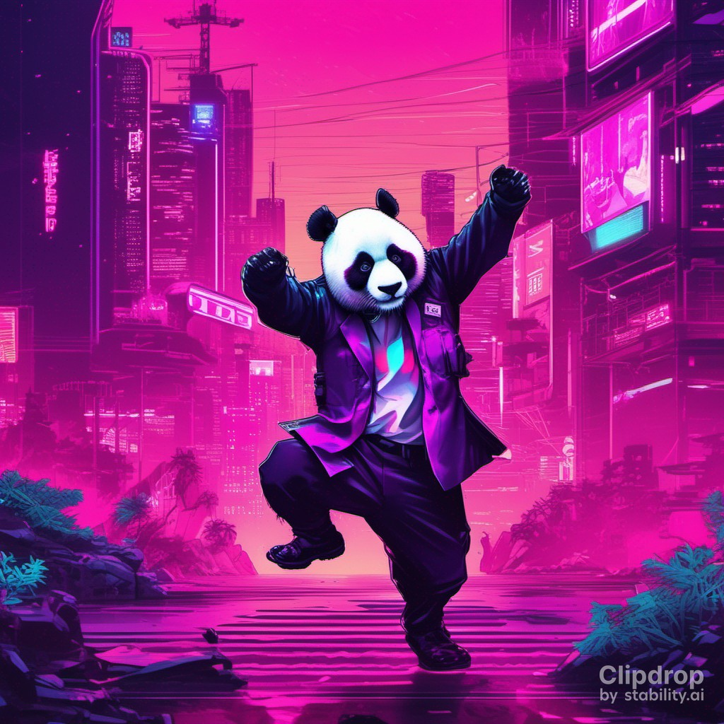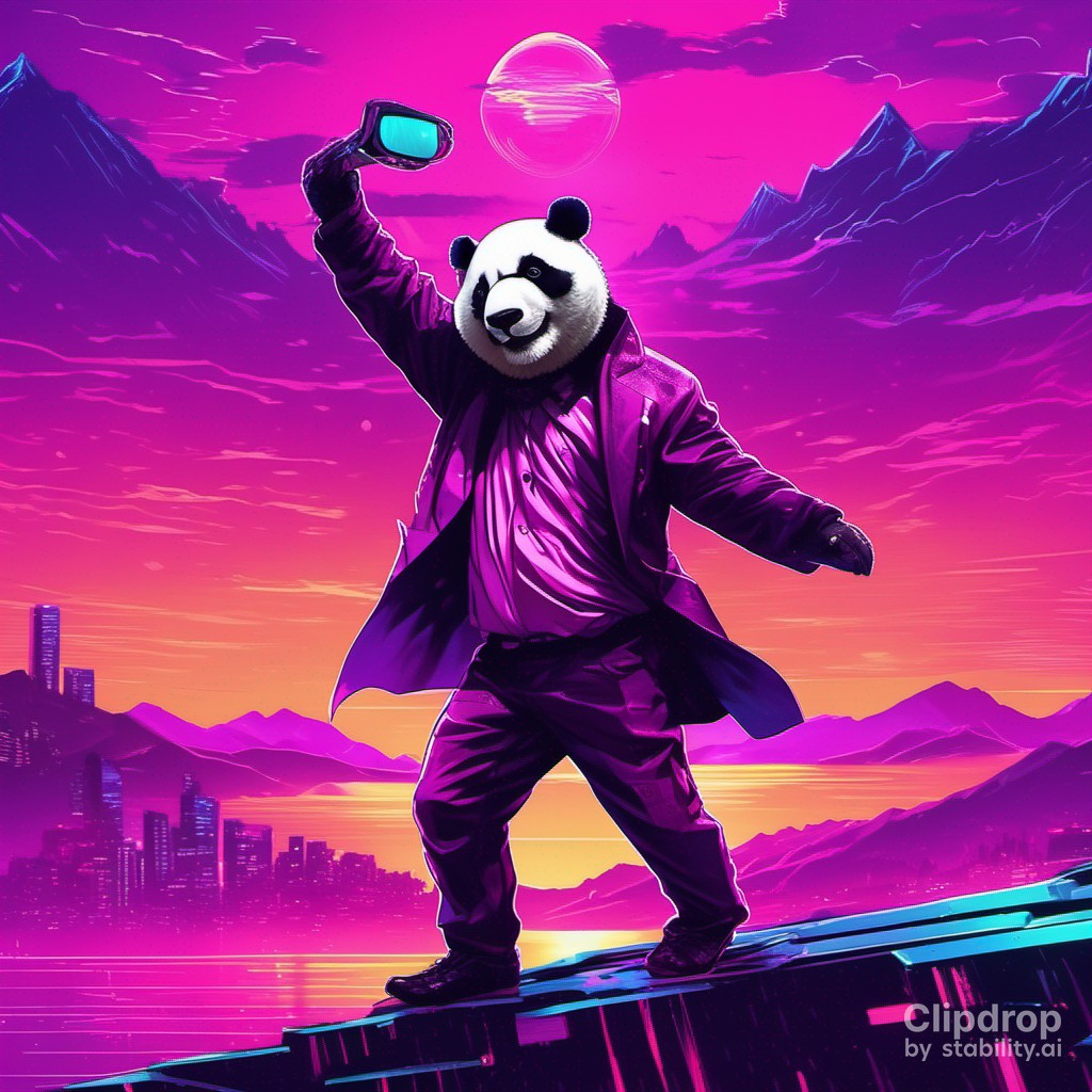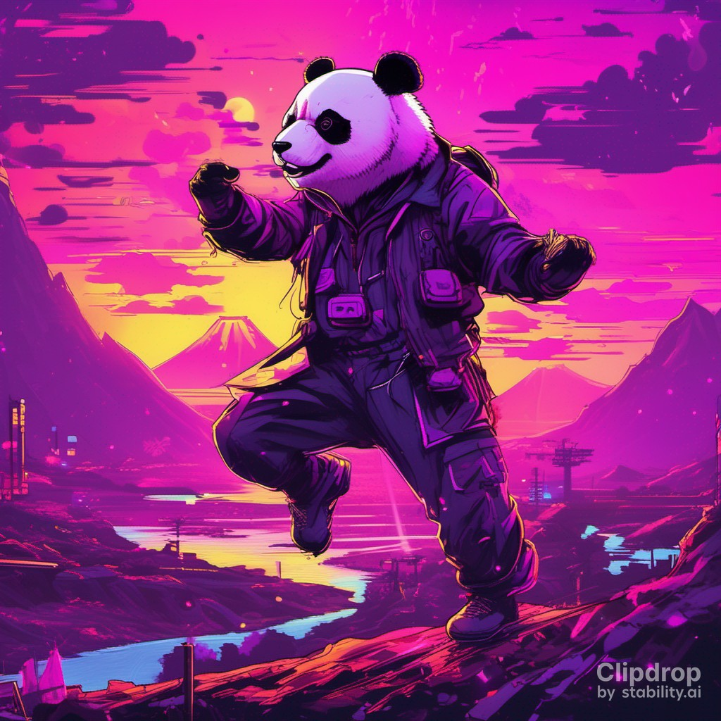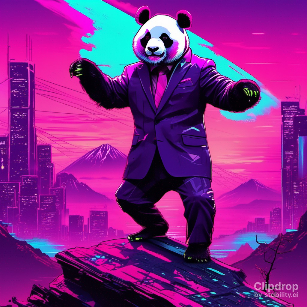 마지막으로 「Suited panda dances in front of Mt Hallasan」이라는 프롬프트로 생성한 이미지입니다.