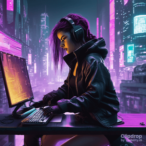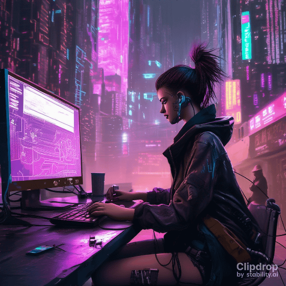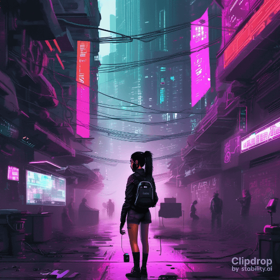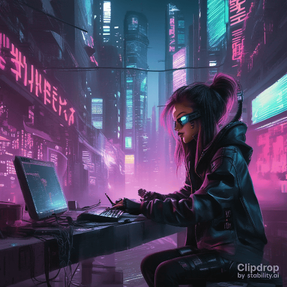 링크에 액세스 하면 다음 화면이 표시되므로 입력란에 바로 프롬프트를 입력하고 "Generate"를 클릭합니다. 이번에는 「A girl hacking in a cyberpunk city.」라고 입력했습니다.