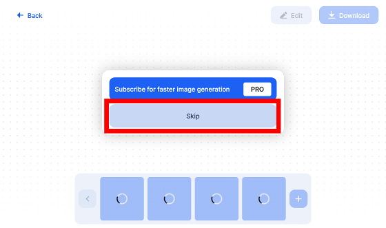 「유료 플랜에 가입하면 대기 시간을 단축할 수 있다」 라는 메시지가 표시됩니다만, 가볍게 「Skip」 합니다.