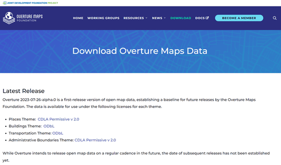 비영리 기술 컨소시엄인 Linux Foundation에 의한 지원하에 Meta · Microsoft · Amazon · 지도회사 TomTom이 설립한, 상호 운용 가능한 오픈 지도 데이터 구축을 목표로 하는 단체 「Overture Maps Foundation」이 설립 이래 최초로 오픈된 지도 데이터 세트를 2023년 7월 27일에 공개했습니다.