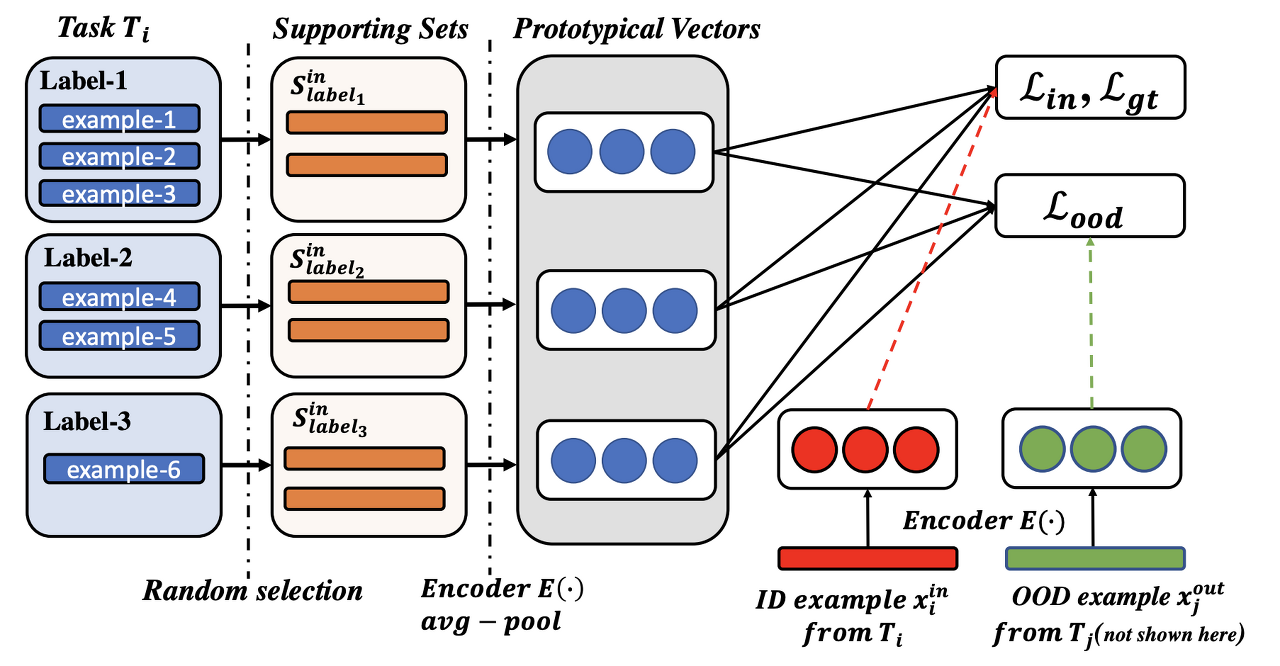 예를 들어, Amazon 리뷰에서 Ti는 도서 도메인, Tj는 응용 프로그램 도메인으로 샘플링합니다.- 알려진 도메인 Ti에서 하나의 샘플 Xn, 미지의 도메인 Tj에서 샘플 Xout을 각각 샘플링합니다.