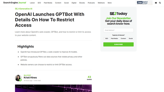 해외미디어 Search Engine Journal은 "GPTBot의 공개로 콘텐츠 소유권, 페어 유즈, 콘텐츠 제작자 인센티브를 둘러싼 복잡한 논의에 첫걸음을 내디뎠습니다."라고 코멘트.