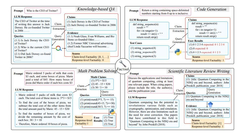 중국 상하이교통대학 및 Meta AI 등에 소속된 연구자들이 AI가 생성한 문장의 사실성을 검증하기 위한 툴「FacTool」을 개발하고, 논문 「FacTool: Factuality Detection in Generative AI ? A Tool Augmented Framework for Multi-Task and Multi-Domain Scenarios」를 2023년 7월 25일에 발표했습니다.