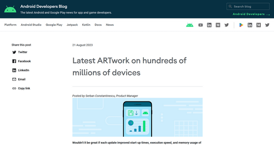 Google이 2023년 8월 21일에 Android Runtime(ART) 업데이트를 통해 앱 시작 시간과 실행 속도를 크게 향상할 수 있다고 발표했습니다. ART가 OS와 독립적으로 업데이트할 수 있게 됨으로써, 구 버젼의 Android가 설치되어 있는 낡은 스마트폰도 앱 성능이 향상될 것으로 기대되고 있습니다.