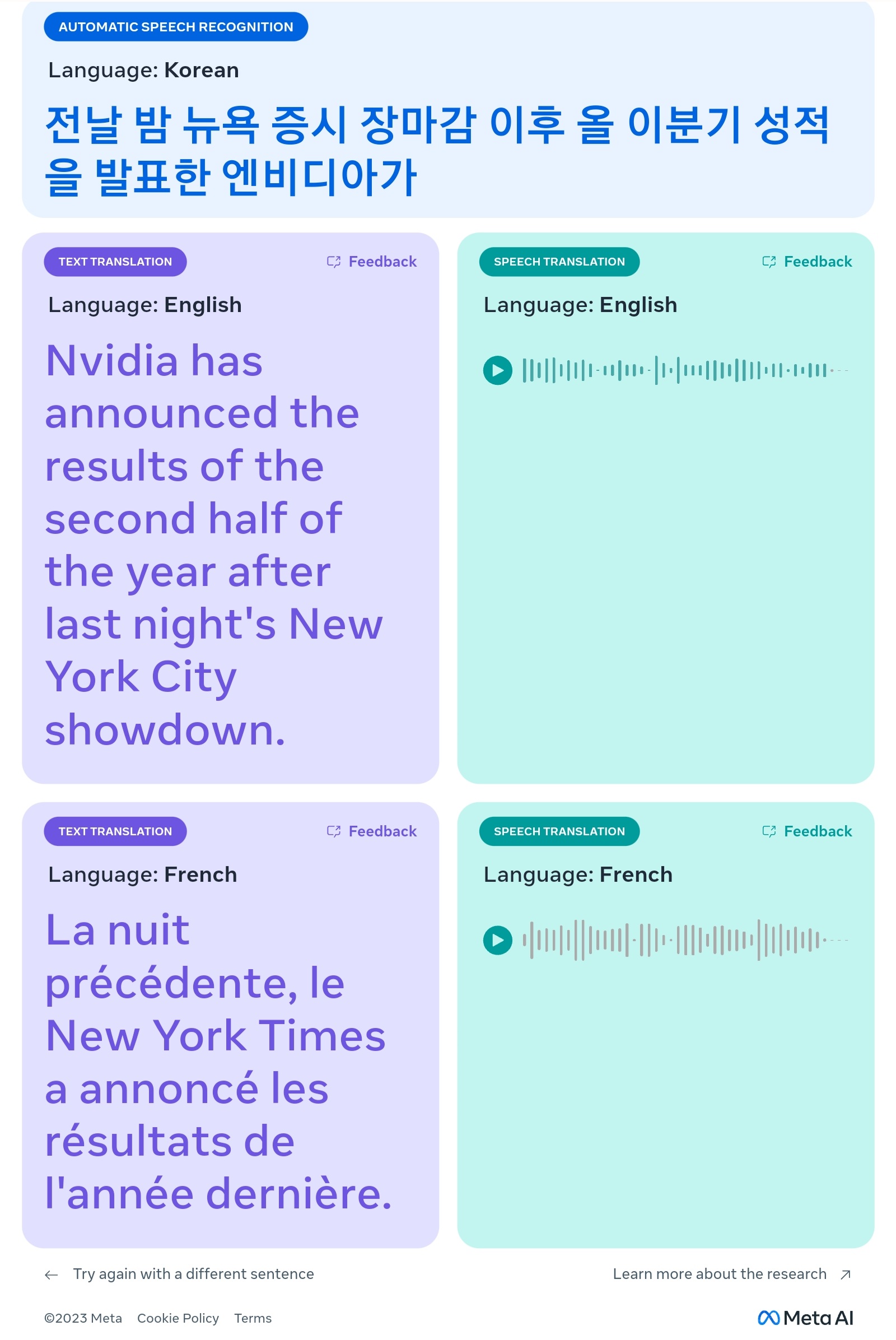 Meta가 음성을 입력하는 것만으로 「음성 인식 텍스트 생성」, 「다른 언어로의 번역」, 「다른 언어로의 더빙」을 동시에 실행할 수 있는 AI 「SeamlessM4T」를 2023년 8월 22일에 공개했습니다.