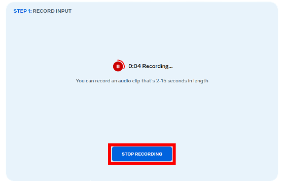 화면에 "Recording"이 표시되면 마이크를 향해 발화하고, "STOP RECORDING"을 클릭합니다.
