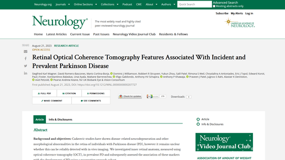 UK 바이오뱅크(유전적 소질과 다양한 환경 노출이 질병에 미치는 영향을 조사하는 영국의 장기 대규모 바이오 뱅크 연구)에 등록한 40~69세의 건강한 자원봉사자 6만 7,311명의 망막 이미지 분석을 실시했습니다. 또한 연구팀은 AI를 사용하여 파킨슨병이 발병한 약 700명 환자의 망막 스캔 데이터와 파킨슨병이 발병하지 않은 피험자의 망막 스캔 데이터를 비교했습니다.