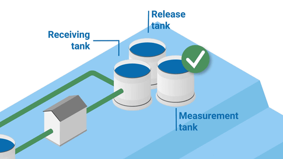 규제 기준치 이하로 확인된 ALPS 처리수는 계측용 탱크로 보내지고, 방출 준비가 되면 방출용 탱크로 옮겨집니다.
